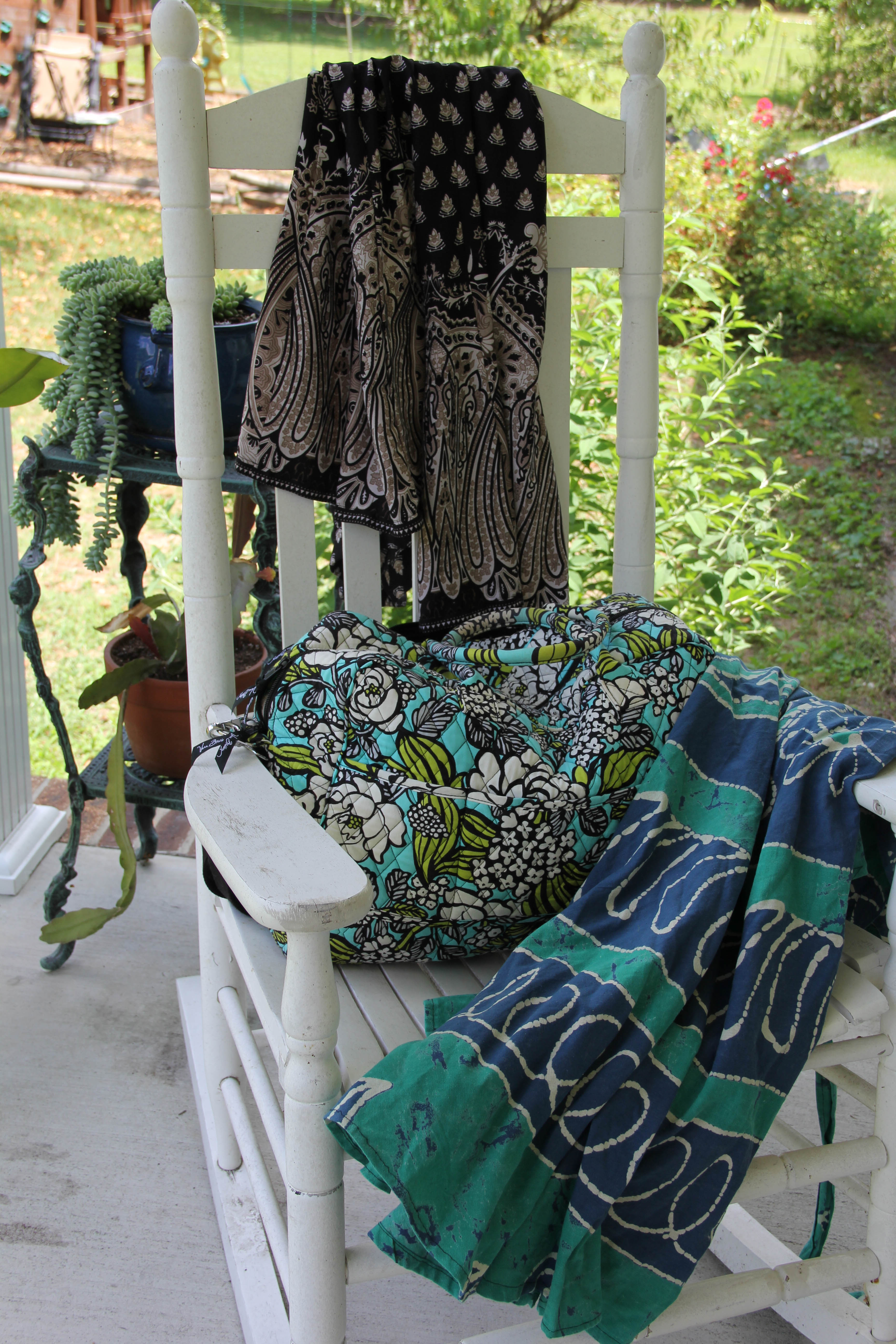 Folks at the most risk are those wearing any sort of patterned cloth. The following items pictured have caused A la King (we always name roosters after chicken dishes) to attack me. Please be aware that I was not wearing all these patterns at once. Don’t judge me.