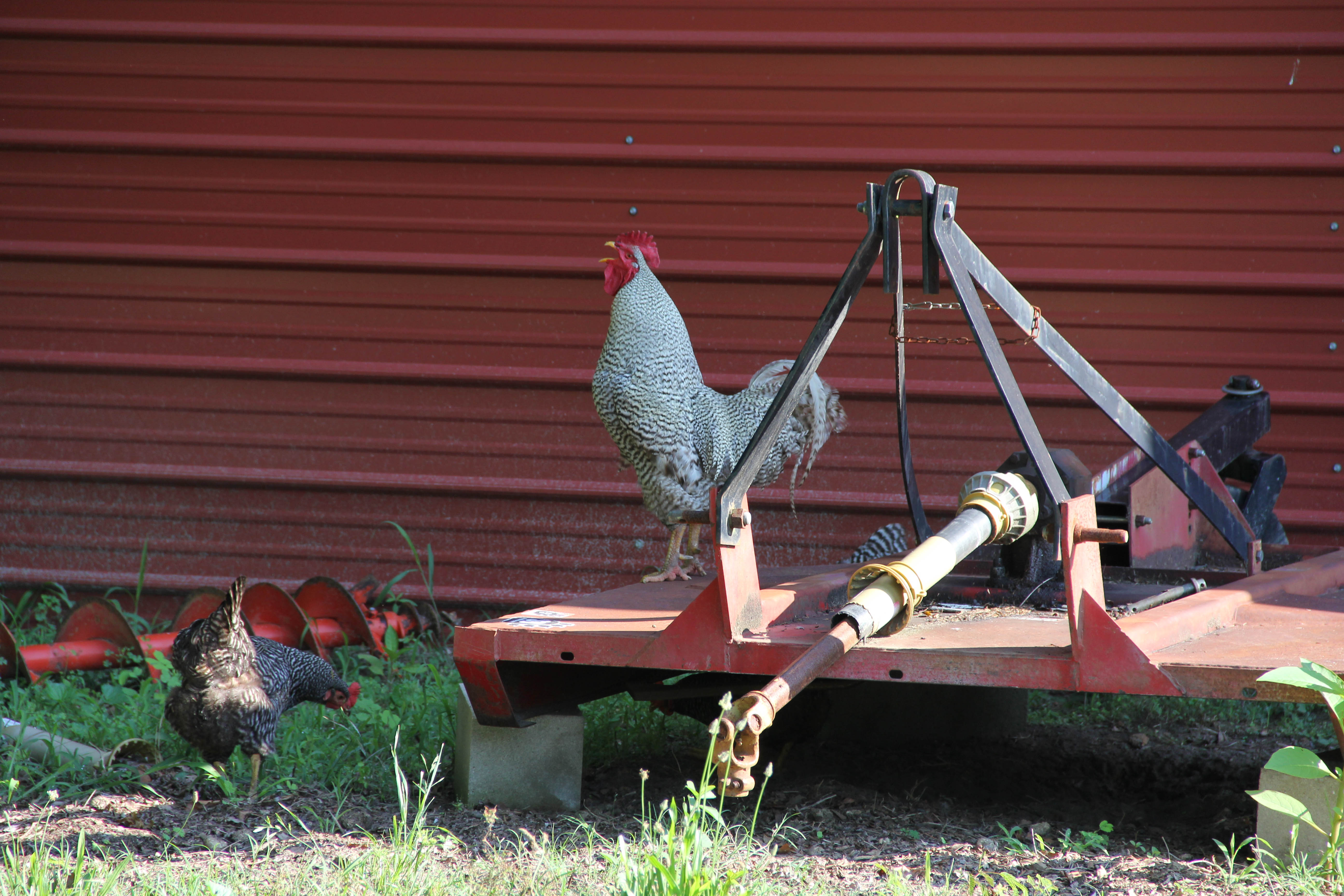 One day A la King will go too far, but that day has not yet come. He earned an extra day yesterday because he noticed a hawk flying across the pasture and herded his hens into the safety of the rosebush that grows through the ironwork of the gazebo. We do like eggs, and we have not lost one single hen since he has been big enough to rush to their defense. There will come a time when he is history, whether through natural or man-made causes, and we will get another rooster. We are stupid that way. I will raise him from biddy to full-blown adult. But I am running out of names. And rake handles.